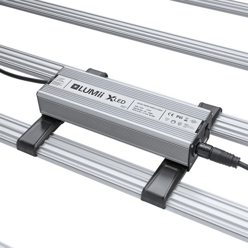 The LUMii XLEDv6 680w LED fixture is a cutting-edge, mid-range 6-bar LED grow light designed for optimal performance and efficiency. Its lightweight construction and user-friendly features make it ideal for indoor cultivation environments. This fixture boasts advanced design elements such as strategically positioned LED chips for even light distribution and an open structure to enhance airflow and heat dissipation.