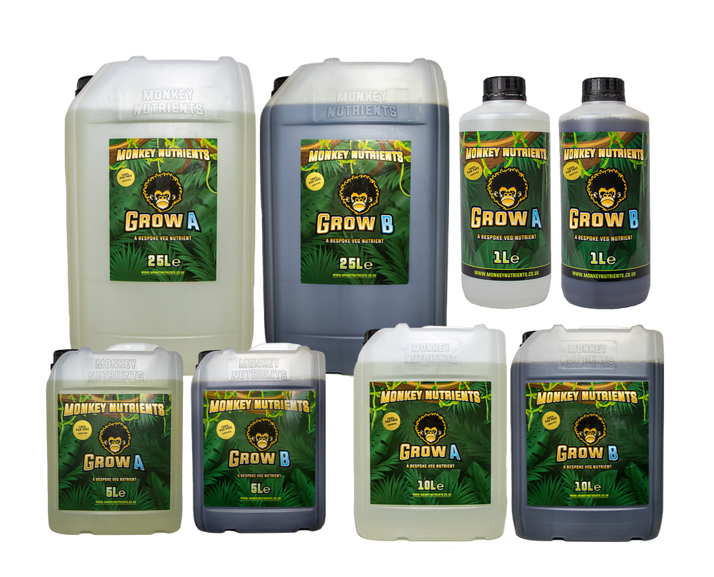 Monkey GROW will give your plants all the essentials nutrients they need during the vegetation period. We have a unique combination of mineral elements and bio-stimulants in this two part formula. This hybridisation of mineral and organic worlds further increases nutrient assimilation, dramatically improving results. The ratios of all 17 essential macro and micro nutrients are tailored to provide the optimum start to life, from root development to cellular growth. Designed for UK waters, Monkey Nutrients base feeds have the perfect balance of concentration and stability.